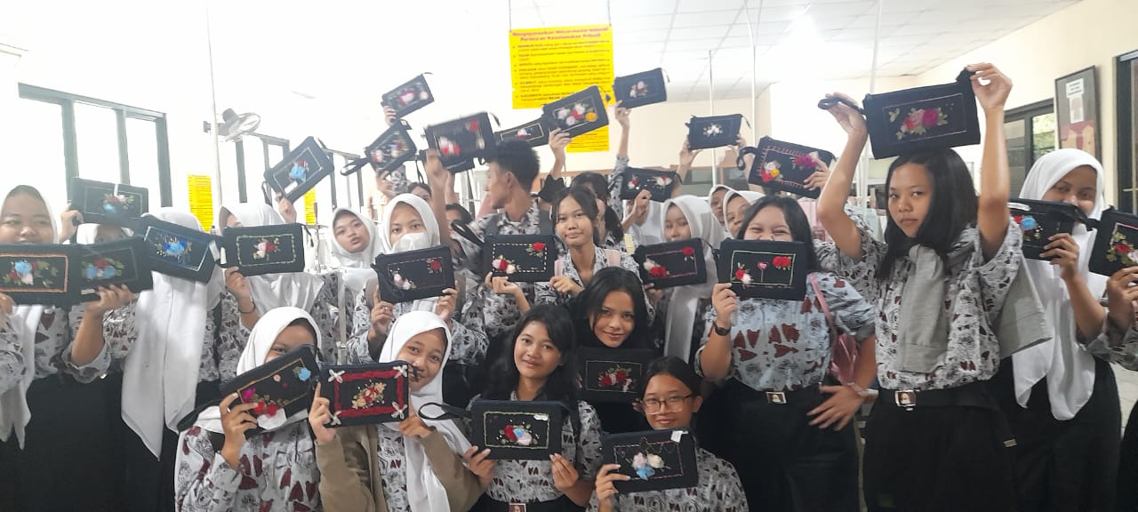 Di dalam lapas, hasil sulaman para siswa tersebut kemudian dikembangkan menjadi produk bernilai guna. Warga binaan yang memiliki keterampilan menjahit mengolah kain sulam pita tersebut menjadi pouch yang rapi dan fungsional.