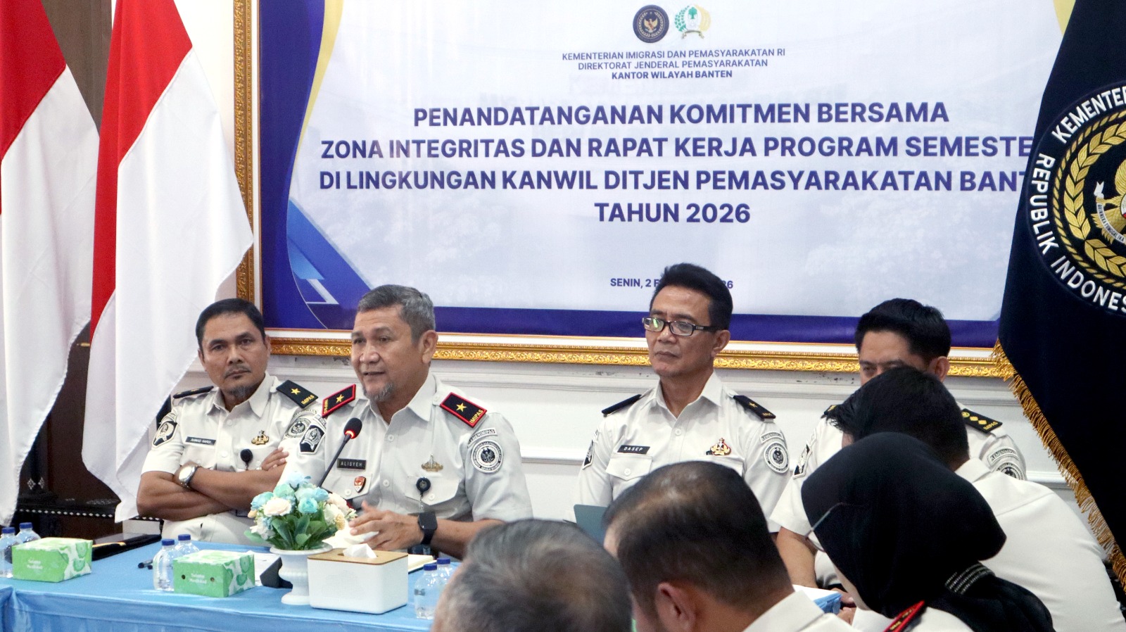 Komitmen tersebut kembali ditegaskan melalui Penandatanganan Komitmen Pembangunan Zona Integritas yang dilaksanakan di Lapangan Upacara Kantor Wilayah Direktorat Jenderal Pemasyarakatan (Ditjenpas) Banten, Senin (2/2/2026). Kegiatan ini diikuti oleh pejabat manajerial, nonmanajerial, serta para Kepala Unit Pelaksana Teknis (UPT) di lingkungan Kanwil Ditjenpas Banten.
