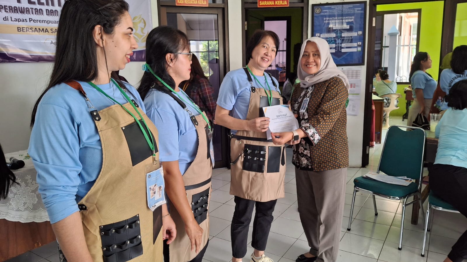 TANGERANG, Reportasexpost.com – 2 September 2025. Rangkaian pelatihan perawatan dan potong rambut yang digelar Lapas Perempuan Kelas IIA Tangerang bekerja sama dengan Salon Simphoni resmi ditutup. Kegiatan yang diikuti oleh 20 warga binaan ini ditutup dengan pembagian sertifikat sebagai bentuk penghargaan atas partisipasi dan keberhasilan mereka mengikuti seluruh materi pelatihan.
