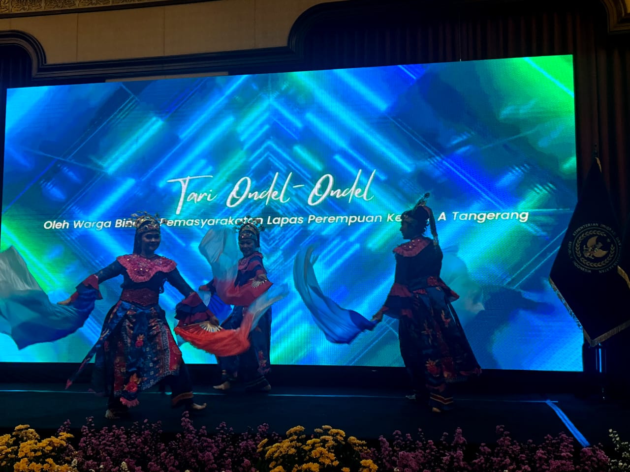 Tim Tari Warga Binaan Pemasyarakatan (WBP) Lapas Perempuan Kelas IIA Tangerang tampil memukau dan menarik para tamu yang hadir membawakan Tarian Ondel-Ondel dalam kegiatan “ Diseminasi Peraturan dan Kebijakan Mengenai Visa dan Dokumentasi Perjalanan Transformasi Kesisteman untuk Mendukung Peningkatan Ekonomi Mewujudkan Indonesia Maju” yang diselenggarakan oleh Direktorat Jenderal Imigrasi.