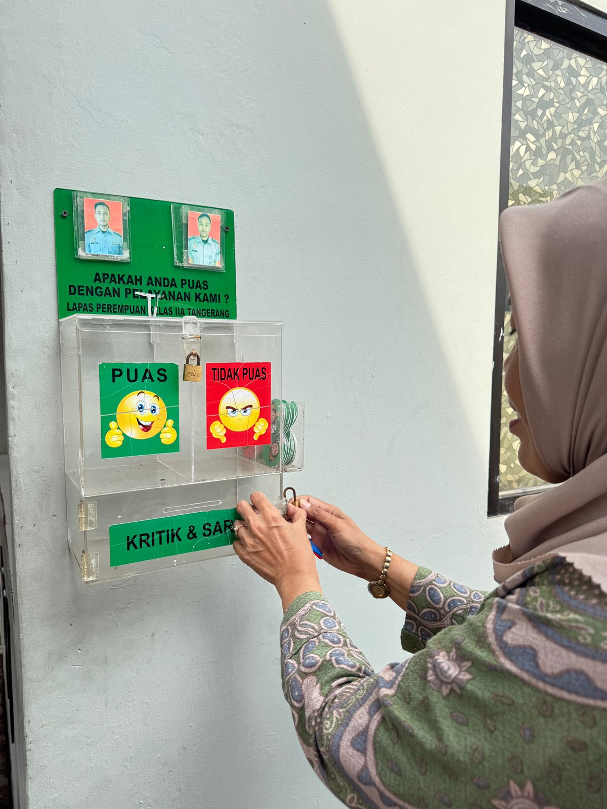 TANGERANG, Reportasexpost.com – 15 November 2025 | Lapas Perempuan Kelas IIA Tangerang melaksanakan survei kepuasan layanan di area Pintu Utama (P2U) menggunakan mekanisme kartu penilaian yang dimasukkan ke dalam kotak survei oleh pengunjung.