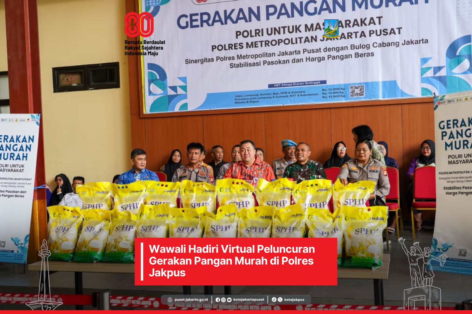 JAKARTA, Reportasexpost.com – Wakil Wali Kota Administrasi Jakarta Pusat Eric PZ Lumbun menghadiri Virtual Peluncuran Gerakan Pangan Murah Polri untuk Masyarakat, di Polres Metro Jakarta Pusat, Kecamatan Kemayoran, Kamis (14/8).
